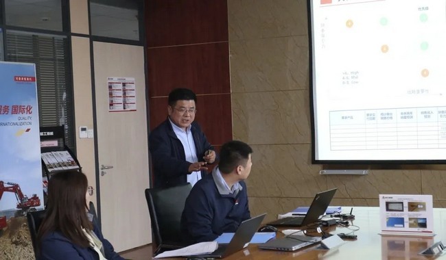 副總經理李連剛結合市場管理案例,向兩個必須工程師講解本土化開發的關鍵工具和方法。他在發言中指出,已投放市場產品必須做區域產品競爭力分析和工地審核,暴露短板、解決存在問題;空白或潛力市場,必須深度挖掘新產品和差異化需求,清晰規劃產品線開發方向和概念設計;針對上半年要發布的新產品,要對目標客戶做好新產品發布推介,讓客戶感知臨工產品的核心競爭力和卓越性能。